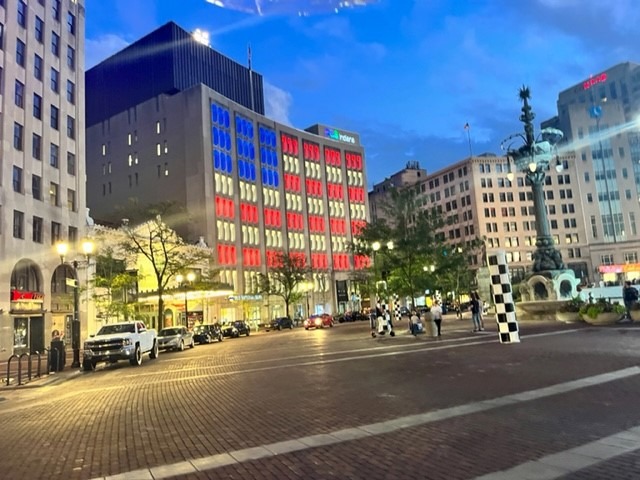 Published Thursday, August 4th 2022 - Updated Thursday, August 4th 2022If you are looking for a great driving trip to a Midwest destination, Indianapolis should be a top consideration. With at least 3 nights to spend there, hopefully more, travelers can experience many of the great attractions that downtown Indianapolis and surrounding areas have to offer. A unique part of downtown Indianapolis is Monument Circle in the heart of downtown. Visitors can admire the statues and monuments in the center of the circle and visit various shops, restaurants, and cafes as well. The image below is of a building in Monument Circle that broadcasts lights on the side of the building at night.