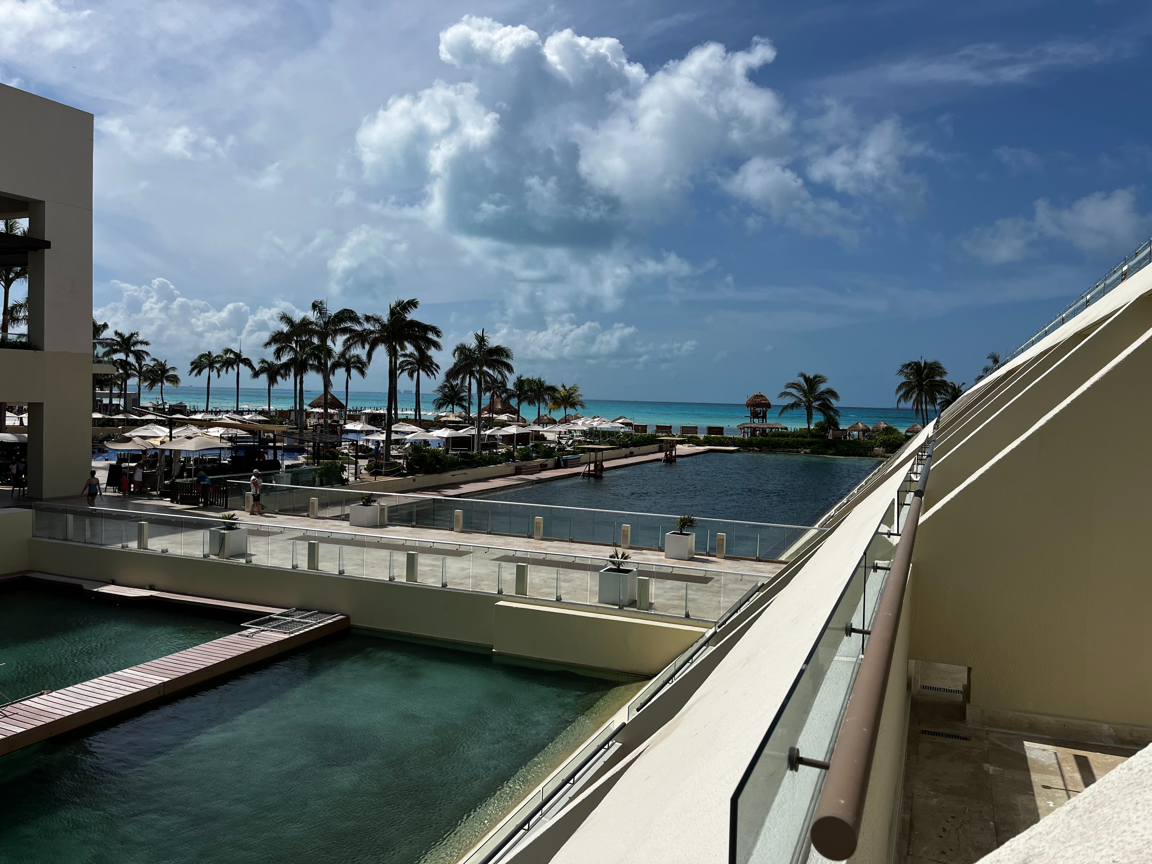 One of the standout features of Hyatt Ziva Cancun is its multiple pool and beach offerings, each with its own distinct vibe. The Main Pool serves as the heart of the resort's action, complete with a swim-up bar, organized activities, and upbeat energy throughout the day. Activities include everything from in-pool blackjack to water exercise classes and even a game of pickleball. It's impossible to be bored at this pool—and if you’d rather kick back and soak up the sun, the nearby bar and poolside waitstaff make it easy to enjoy refreshing drinks without ever leaving your lounge chair. If you're craving a more peaceful environment, head over to the quieter pool. Here, the pace slows down, creating the perfect atmosphere for relaxation. The design of the pools is equally impressive. They’re multi-level, with expansive upper decks offering infinity-edge views of the Caribbean Sea. Despite the popularity of both pool areas, the sheer size creates a sense of openness—it never feels overcrowded.
