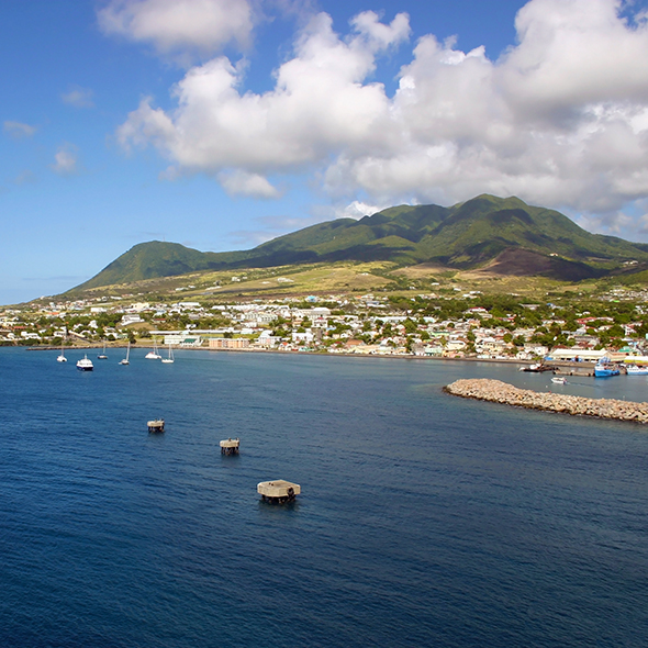 Authentic Caribbean foods at Basseterre, and a peaceful setting virtually untouched by tourism are among St. Kitts most enchanting features. For breathtaking views, visit Brimstone Hill Fort, an impressive construction atop Mt Liamuiga that is one of the wonders of the Caribbean.