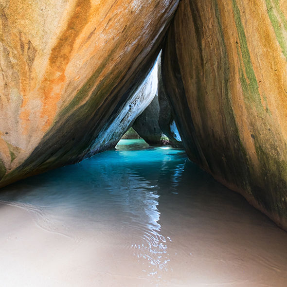 Two outstanding scenic destinations highlight this Caribbean call. First, "The Baths." This natural wonder - unique in all the Caribbean - consists of giant boulder which tumble across the landscape and atop one another to form labyrinthine caves and clear, salt-water pools that are lit by the rays of the sun. Second is Gorda Sound, a protected anchorage, known the world over by seasoned yachtsmen. Virgin Gorda, Itself, is a rustic cluster of small farms with about 1,000 inhabitants.
